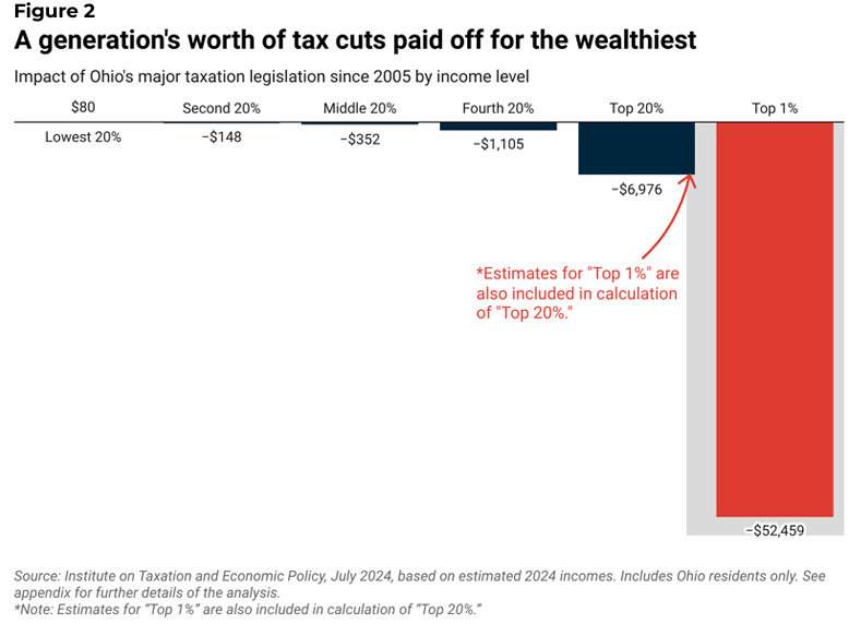 “For a more comprehensive understanding of Ohio’s revenue situation, we need to look back two decades. Beginning in 2005, Ohio lawmakers embarked on an income tax cutting crusade. For a generation, lawmakers have used tax policy to create loopholes and handouts for the most wealthy and influential. As a result, we have lost out on decades’ worth of potential in our state, sacrificing our well-being and economic security to help the rich get richer.”